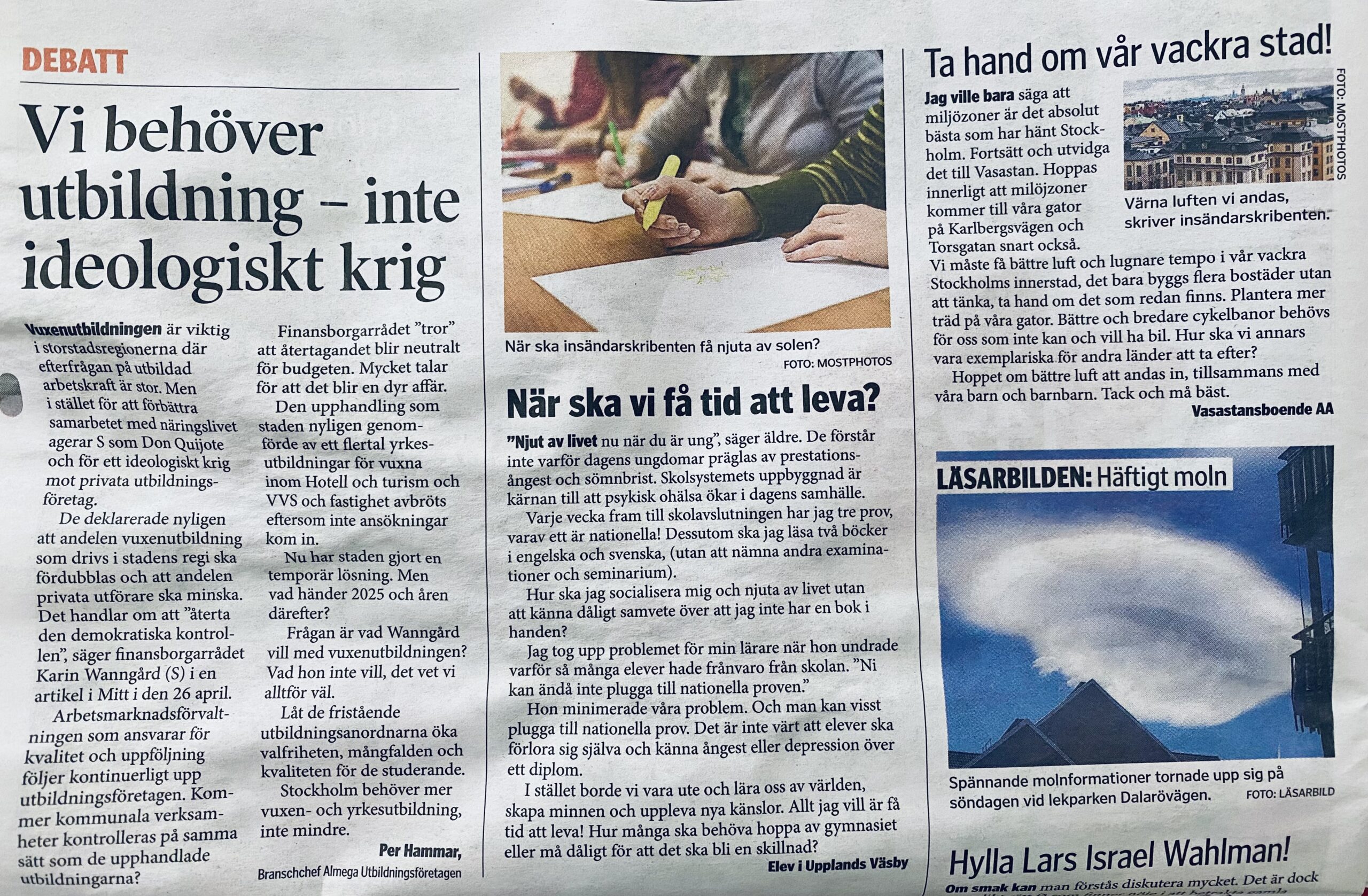 Well, some thoughts about Europe. However, the basic idea is to preserve peace and stability. This has thankfully been strengthened with our Swedish entry into NATO. Imagine that Sweden could actually have been Ukraine to get a realistic picture of the political security situation today.