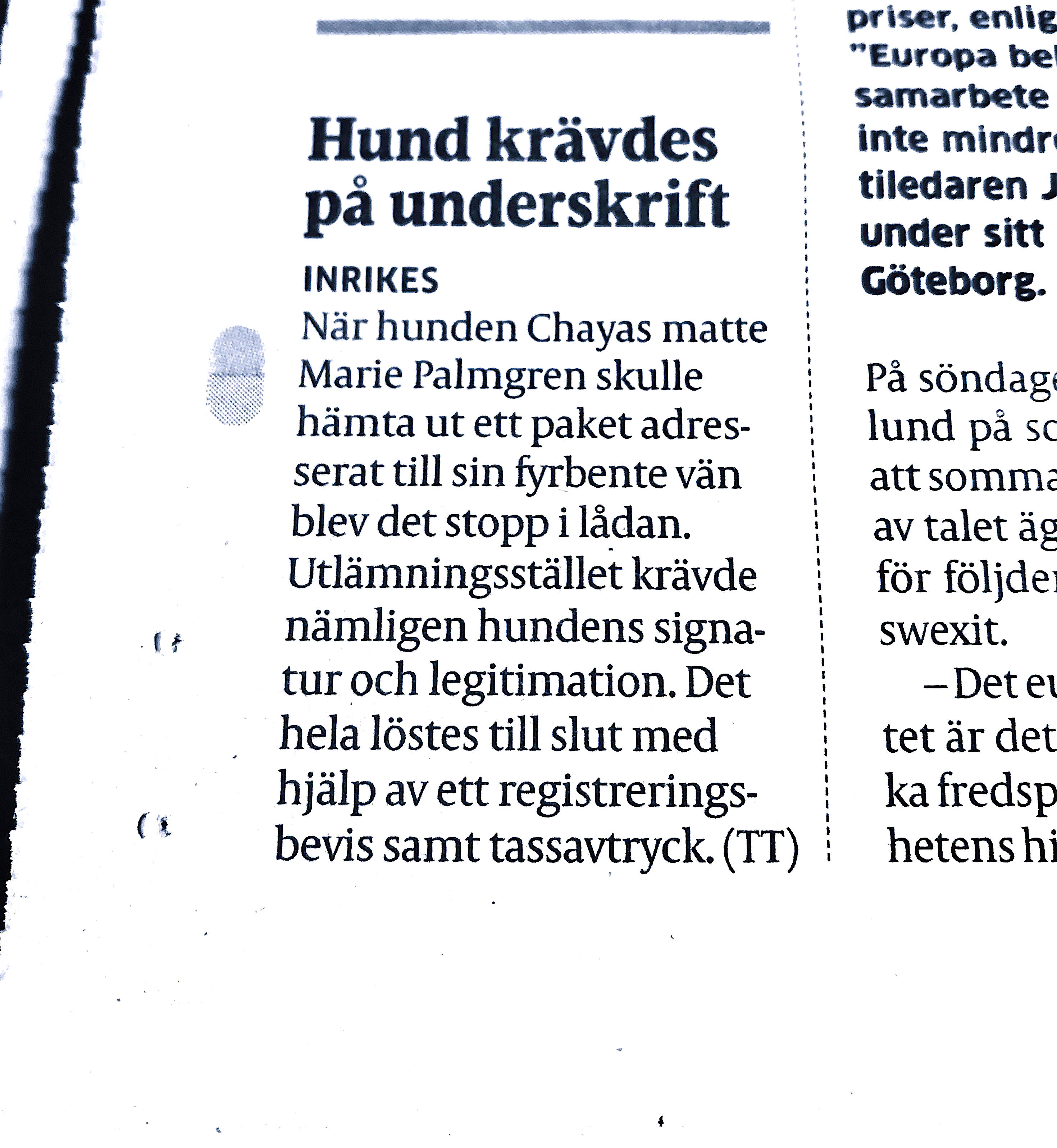 My book that I have written takes place in Uppsala. Therefore, I follow UNT (Upsala nya tidning) to see what is going on there. I found this little notice below in the newspaper. So charming. Moreover, the other week I saw the news in the morning and I saw these police dogs being trained in Chile. They look adorable. The big dogs wear shoes. So, I share this movie.