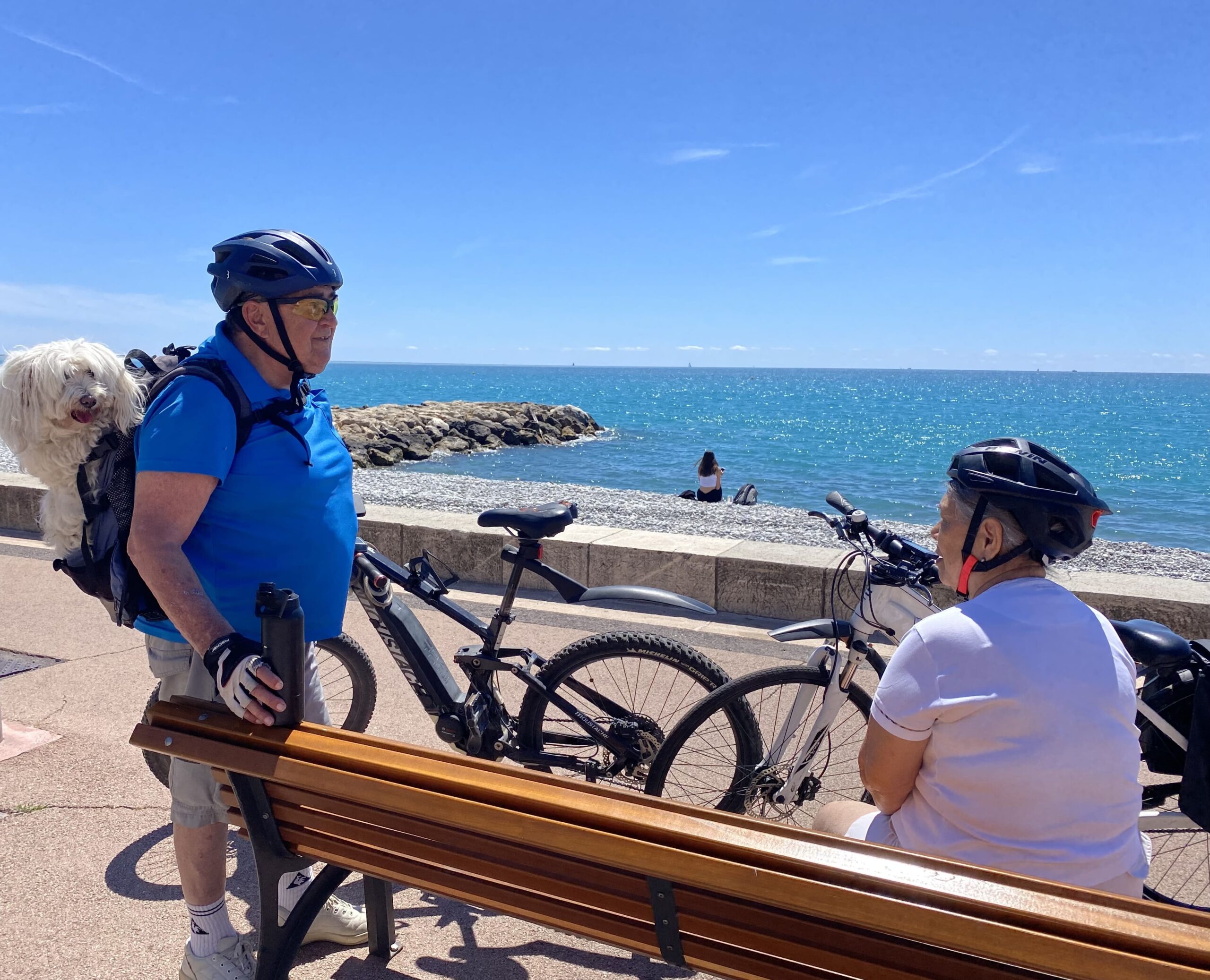 When I arrived yesterday, I wanted to go for a walk at once. Sporty France. Cycling is almost like a national sport among both young and old people. As usual, I cannot resist dogs and I got to pet this sweet Tintin. He didn’t want to jump out of the backpack. You can see that he enjoyed the bicycle ride as the photo above relieves.