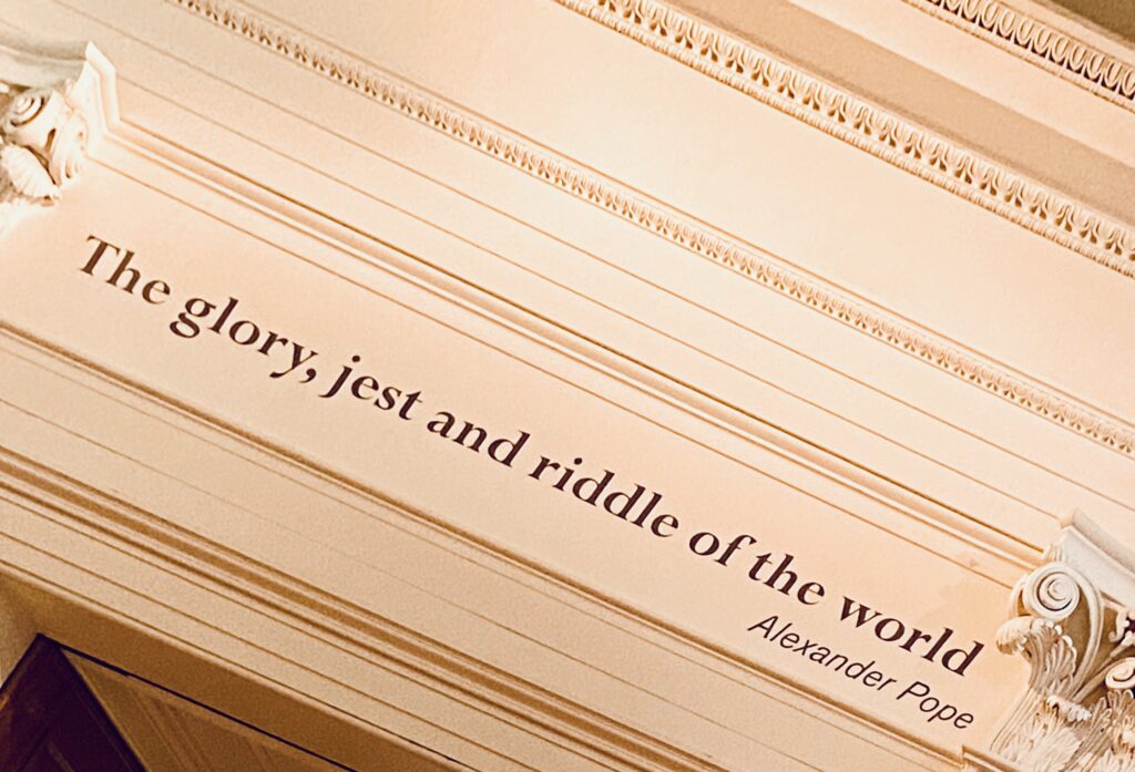 I got inspired in London. I could have stayed longer at the British Museum. So much to see. I saw something that caught my attention. Some kind of a citation as you can see above. A very beautiful sentence, I thought. Later, I found out that a famous British poet has this sentence in his “An Essay on Man”. Always challenging to interpret writing, but for me this is a reflection of humanity in words. The universe is explained in words instead of defining the universe by physics and biology. Words instead of molecules. Perhaps difficult to write the essay in Swedish since the English language is so diverse compared to Swedish.