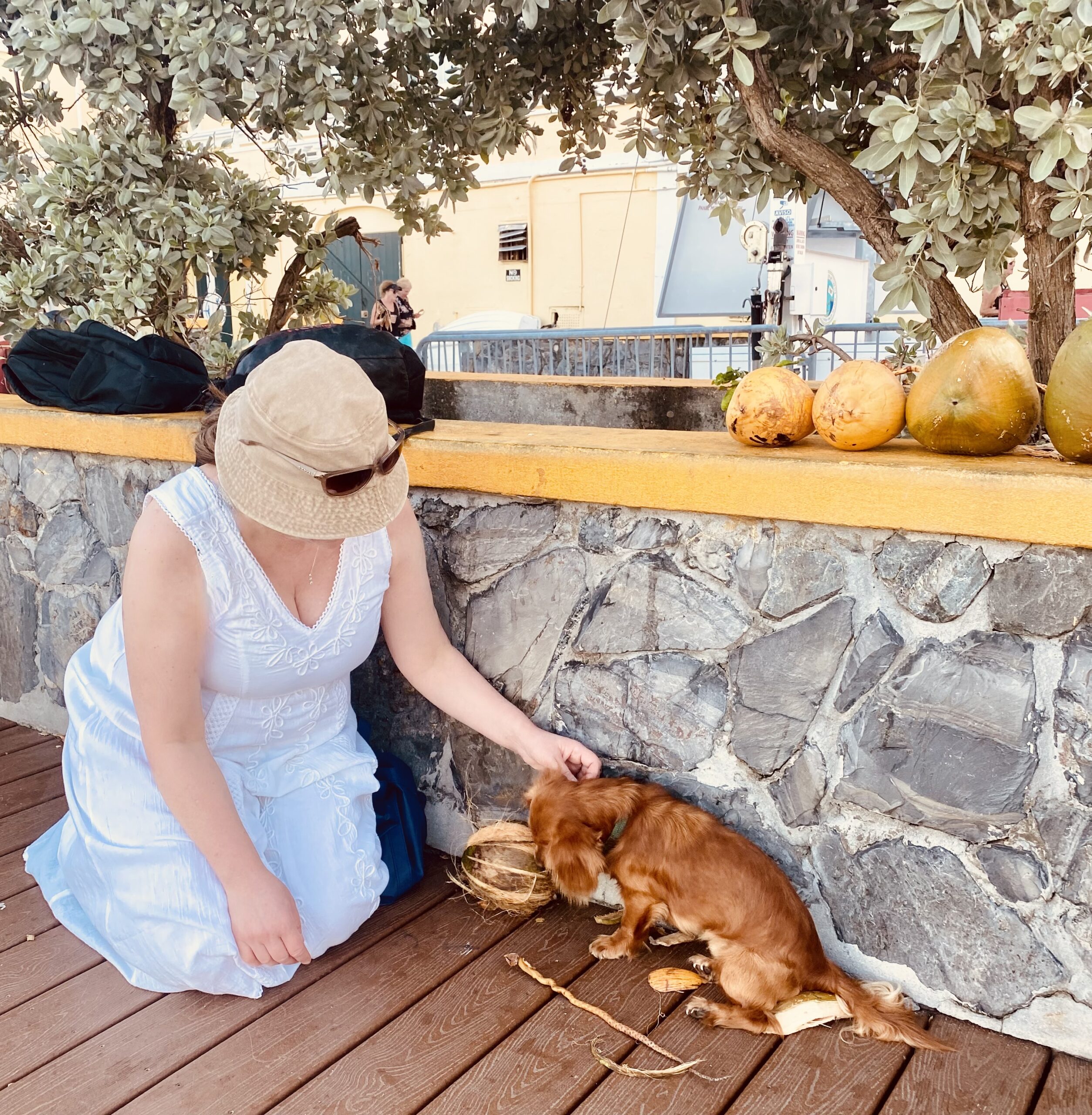 As usual, I meet dogs when I travel. I was very glad to meet JJ. He is from Puerto Rico and looks very much like Molly. Shorter paws though. JJ loves to play with coconuts and sometimes that is his nickname. I share some photos of us above.