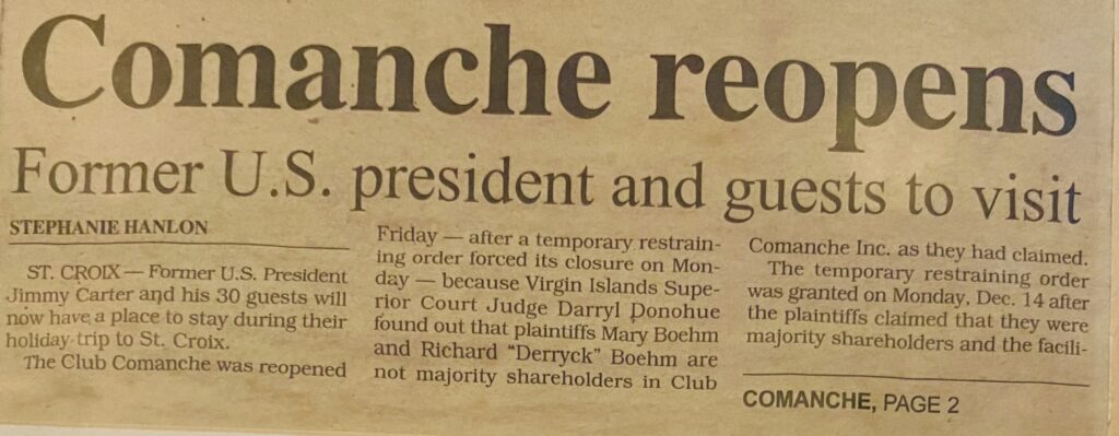 This is a very old hotel I am staying at. Comanche has been here for centuries. Presidents have stayed here and I found this old paper from 2009 (see above), when former President Carter was at St Croix. The sun is shining, and there is a lot of inspiration in the air. I am continuing to do sports. Went for a refreshing swim yesterday.