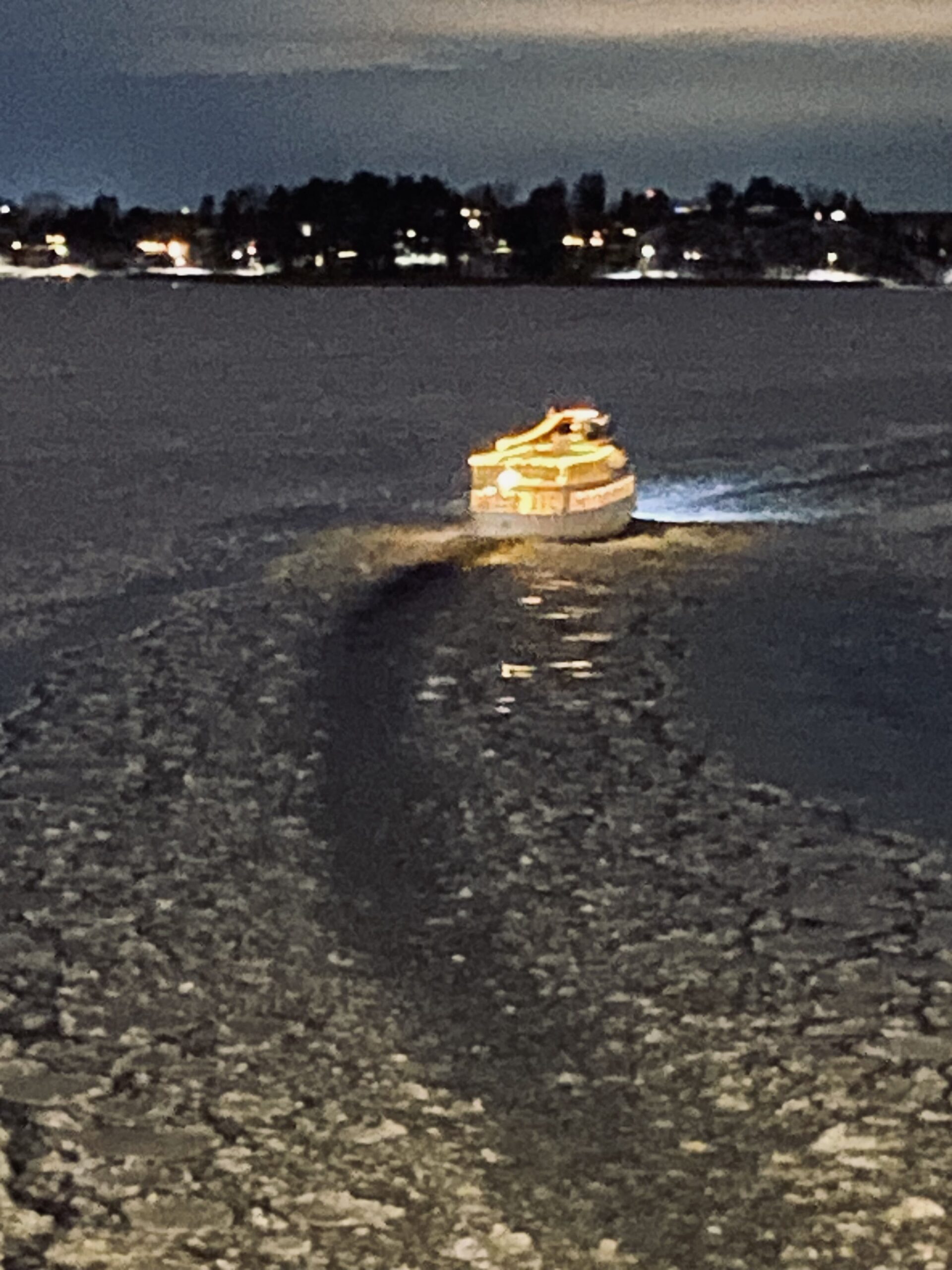 Wonderful with snow. The fact that I wobbled a little on my cross-country skis made me think of ice skating. Not ice hockey, but I remembered my figure skates. Either you went to the lake, or there was a hockey rink that you could go to. By chance, I happened to see this boat in the photo below one evening. The ice gives way to the archipelago boats in Stockholm. I love this chilly picture.