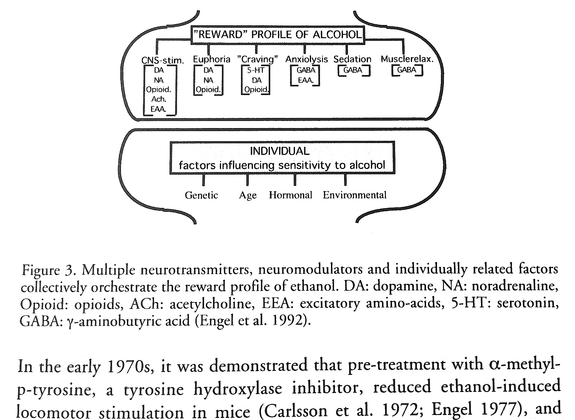 Above is an illustration (Engel et al. 1992) showing the complexity of the reward profile of alcohol. The text is from my thesis.