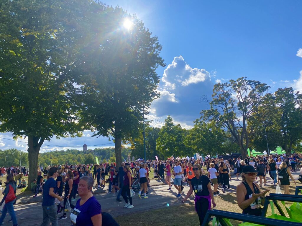 Five years ago I took part in “Tjejmilen”. It was also a fantastic sunny day. Then the pandemic came and I started cycling instead. I didn´t want to go subway etc. to avoid getting infected. I keep my new habit of cycling and feel that I miss my jogging habits, which have been on the shelf for a few years. The oldest participant was 93 years old. She was inspiring!