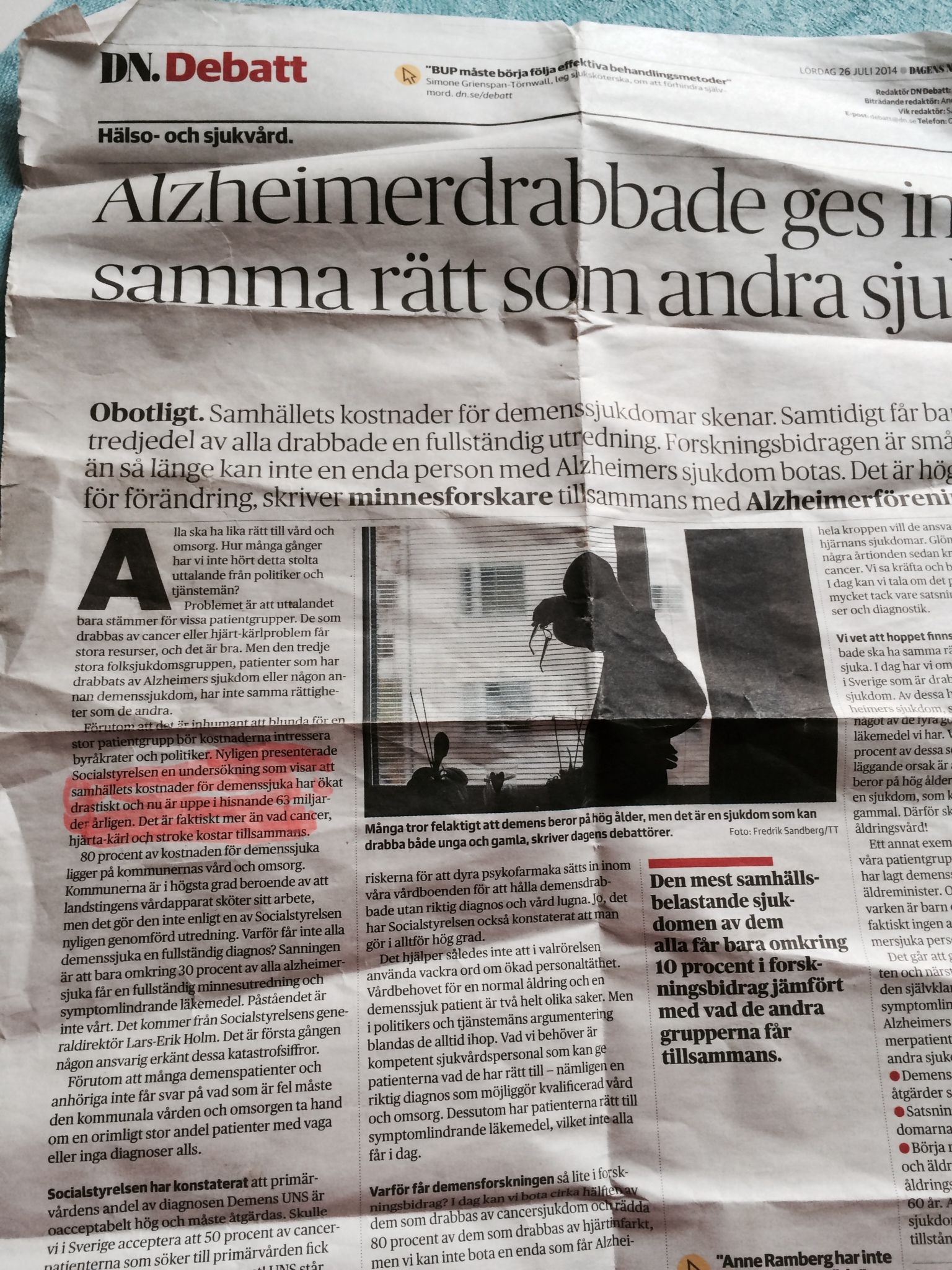 Debattartikel Hälso- och sjukvård, DN 26 juli 2014, Agneta Nordberg et al.