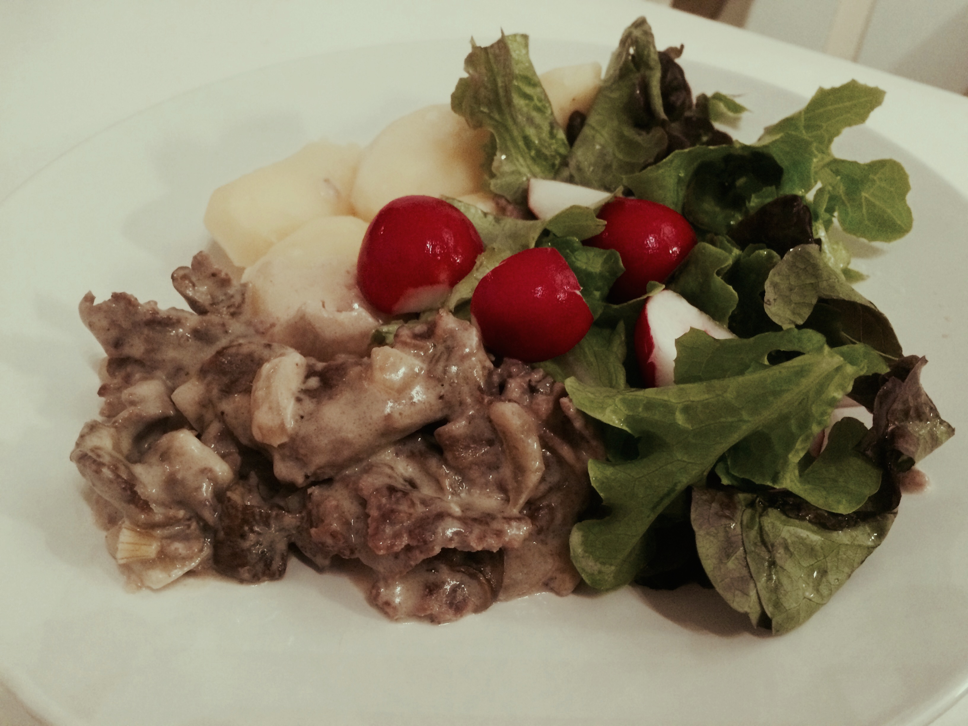 Renskavsgryta (Panabierko) med trattkantareller och mandelpotatis