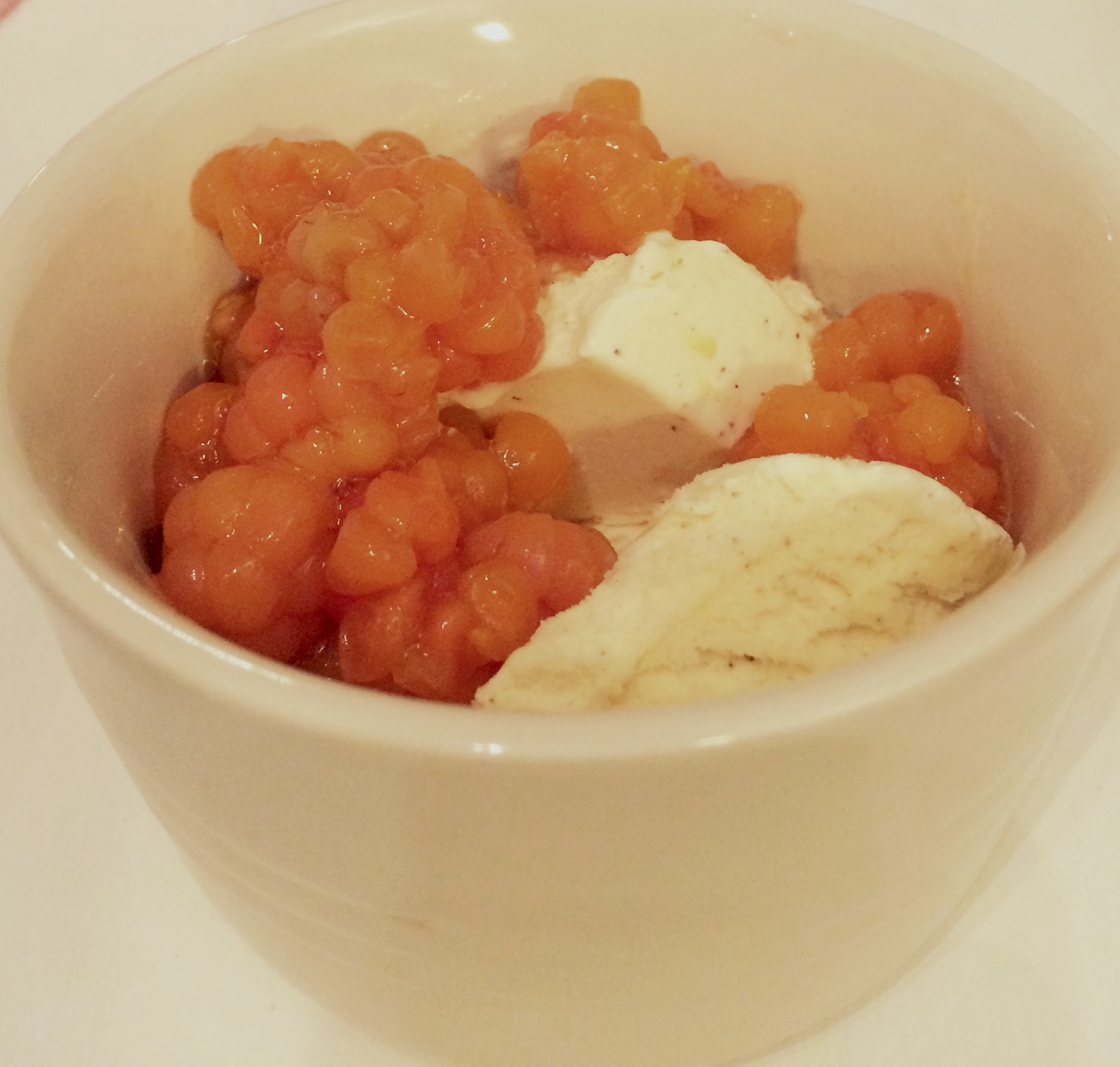 Vaniljglass med rårörda hjortron